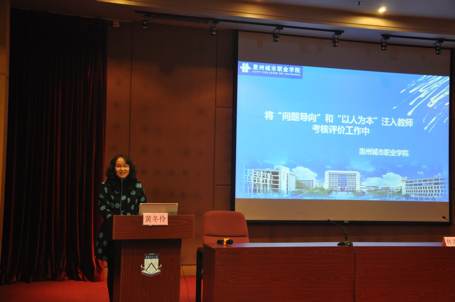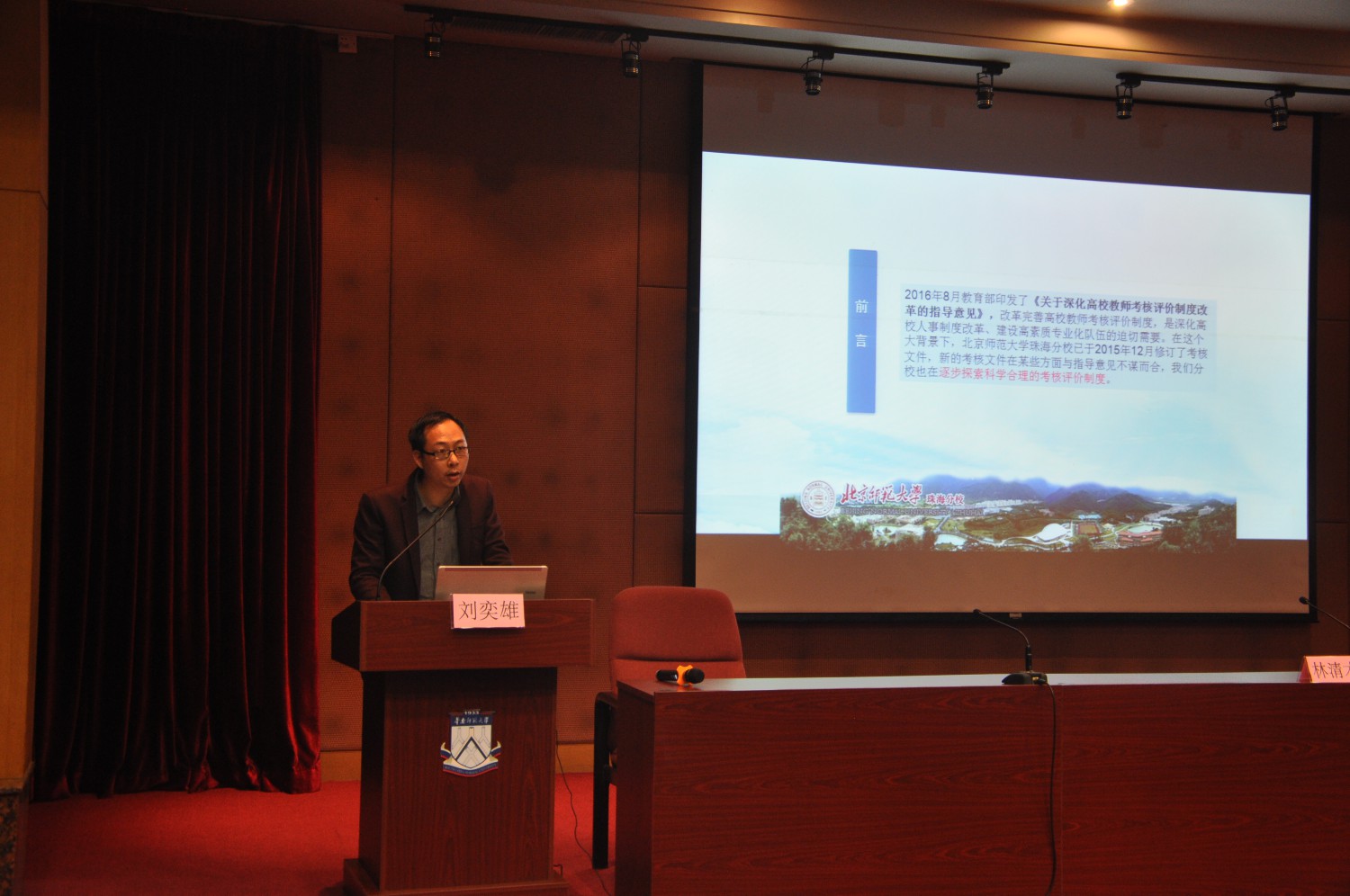 会议邀请了岭南师范学院副院长黄崴教授做主题报告。黄崴教授以“新常态下高校教师考核评价制度改革探索与思考”为题,从国家经济社会发展和高等教育深化改革背景下阐述了高校教师考核评价制度改革的重要性和必要性。他认为教育部《关于深化高校教师考核评价制度改革的指导意见》的出台,充分体现了“遵循规律,坚持导向、师德为先,中国特色、突出业绩,三位一体、专业发展,源头活水、合理运用,联动落实”五大特点。他以北京大学和清华大学经济管理学院在教师考核评价制度的改革措施为例,对与会人员进行详细介绍和解读。