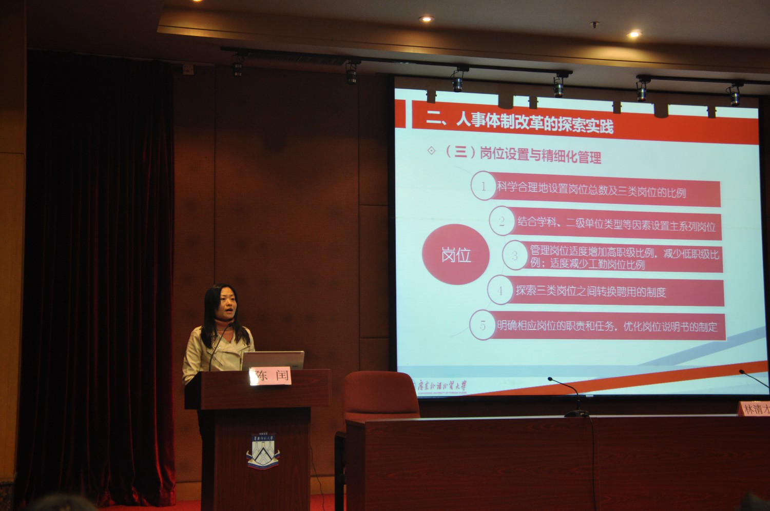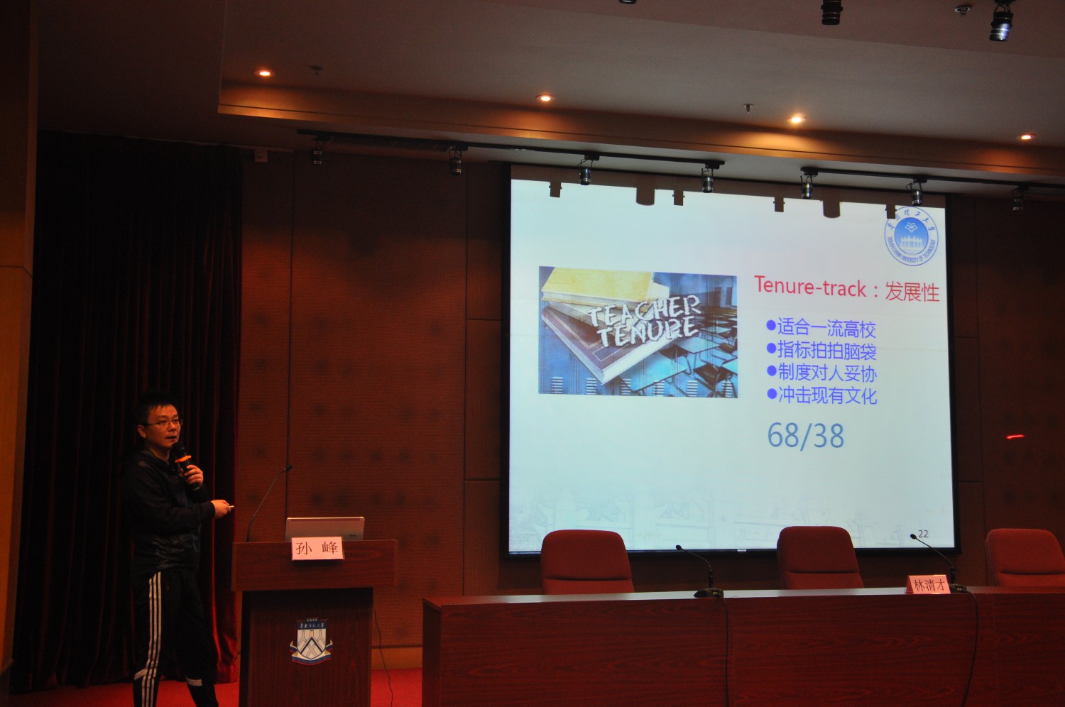 会议邀请了岭南师范学院副院长黄崴教授做主题报告。黄崴教授以“新常态下高校教师考核评价制度改革探索与思考”为题,从国家经济社会发展和高等教育深化改革背景下阐述了高校教师考核评价制度改革的重要性和必要性。他认为教育部《关于深化高校教师考核评价制度改革的指导意见》的出台,充分体现了“遵循规律,坚持导向、师德为先,中国特色、突出业绩,三位一体、专业发展,源头活水、合理运用,联动落实”五大特点。他以北京大学和清华大学经济管理学院在教师考核评价制度的改革措施为例,对与会人员进行详细介绍和解读。